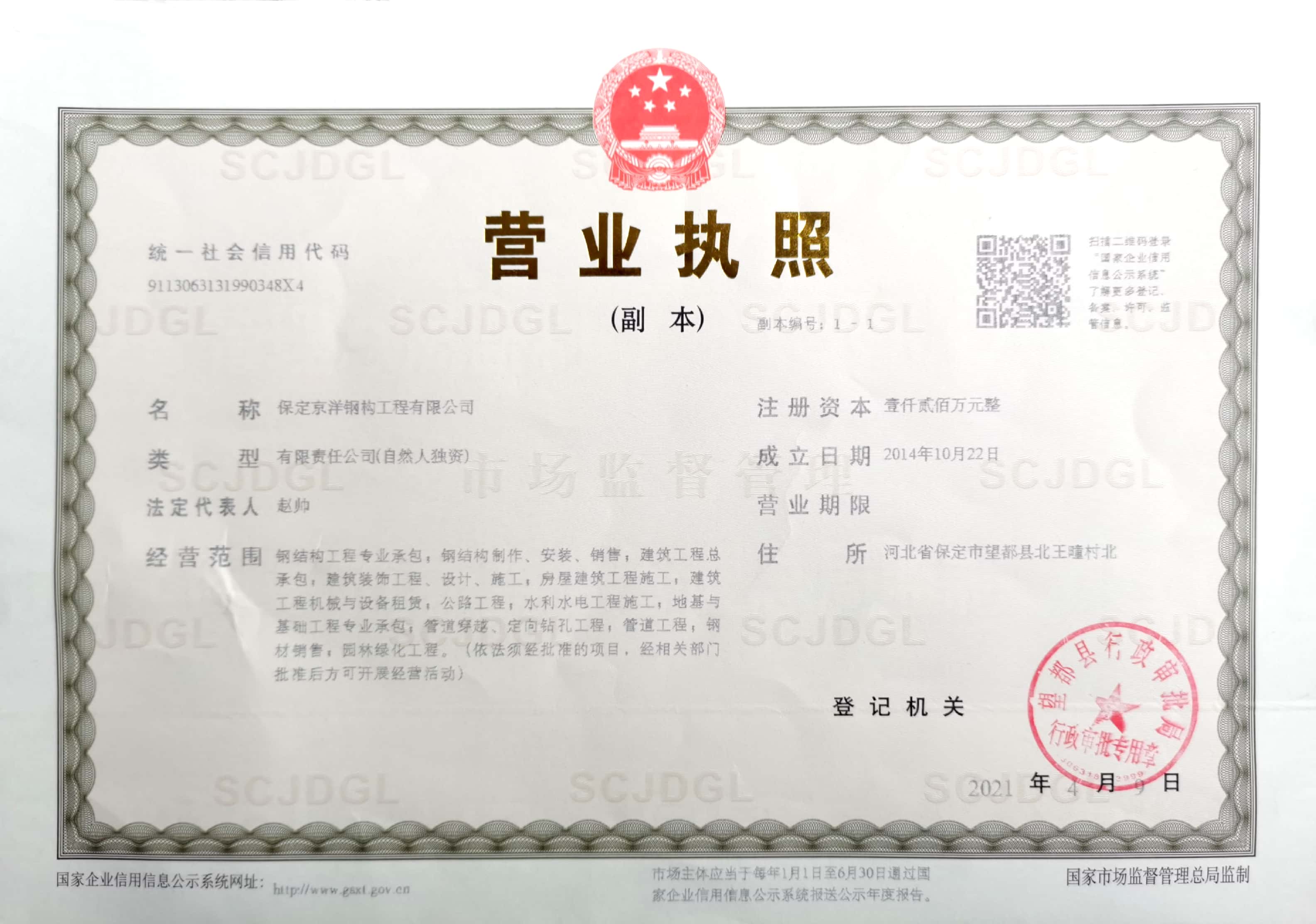 保定京洋鋼構(gòu)工程有限公司位于千年古縣望都。望都縣處于京津冀核心區(qū),是對接京津的交通要塞。距北京180公里,天津170公里,石家莊機(jī)場70公里。京石高鐵、京廣鐵路、京港澳高速、107國道四條交通大動脈縱貫全縣。圍繞望都南北各一座高鐵站,定州站(30公里)和保定站(35公里)。京昆高速、保阜高速均有連接線,四條省級公路縱橫交錯(cuò),交通便捷。